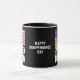 Funny BEN DRANKIN 4th of July Mug patriotic coffee mug showing an image of Benjamin Franklin and the Stars and Stripes flag of the United States. Includes a trio of beers. At the centre, you can CUSTOMIZE THE TEXT and add your name, etc. Ideal fun July 4th mug for American Independence celebrations. Also in white.