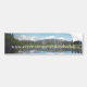 A colourful digital illustration of Mount Rainier, the surrounding landscape and the blue sky reflecting into the still waters of a lake. The store's website address is printed in an easy to read white text across the bumper sticker.