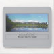 A colourful digital illustration of Mount Rainier, the surrounding landscape and the blue sky reflecting into the still waters of a lake. The artwork has a grey border. Below the image is the title: Bench Lake Mount Rainier National Park, Washington, within a border and in the same grey colour.