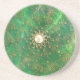 Fractals combined to create green light patterns on the sea floor, overlaid with ornate gold spirals and a single pearl. The fractals were created in Apophysis and Xaos.