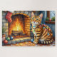 Bengal Cat Fireplace with Christmas Lights Jigsaw Puzzle