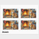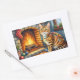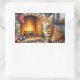 Bengal Cat Fireplace with Christmas Lights Rectangular Sticker