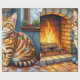 Bengal Cat Fireplace with Christmas Lights Wrapping Paper