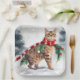 Amidst a winter wonderland, a playful cat enjoys a snowy Christmas morning, leaving adorable paw prints in the glistening snow. Their joy and curiosity add warmth to the enchanting holiday scene, making it truly magical.