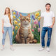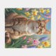 Bengal Cat Spring Flowers Painting Fleece Blanket