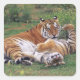 Bengal tigers playing square sticker