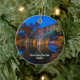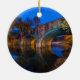 Circle ornament souvenir featuring a stunning early fall morning twilight view of the 64 ALT Bridge in Bennett Spring State Park, Bennett Springs, Missouri, USA. There are still stars out. You can see the waterfall from the dam on the other side of the bridge with a hint of some fog on this fall season morning.