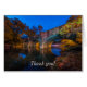 Thank you card featuring a stunning early fall morning twilight view of the 64 ALT Bridge in Bennett Spring State Park, Bennett Springs, Missouri, USA. There are still stars out. You can see the waterfall from the dam on the other side of the bridge with a hint of some fog on this fall season morning.
