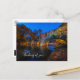 Thinking Of You postcard featuring a stunning early fall morning twilight view of the 64 ALT Bridge in Bennett Spring State Park, Bennett Springs, Missouri, USA. There are still stars out. You can see the waterfall from the dam on the other side of the bridge with a hint of some fog on this fall season morning.