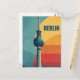 This vintage-style poster showcases the iconic silhouette of Berlin’s TV Tower (Fernsehturm), standing tall against a minimalist retro background. The bold contrast and faded tones evoke the spirit of mid-century design, capturing the modernist elegance of Berlin’s skyline. A striking tribute to one of Germany’s most recognisable landmarks — perfect for lovers of vintage travel art and urban architecture.