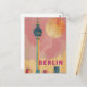 This vintage-style poster showcases the iconic silhouette of Berlin’s TV Tower (Fernsehturm), standing tall against a minimalist retro background. The bold contrast and faded tones evoke the spirit of mid-century design, capturing the modernist elegance of Berlin’s skyline. A striking tribute to one of Germany’s most recognisable landmarks — perfect for lovers of vintage travel art and urban architecture.