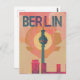 This vintage-style poster showcases the iconic silhouette of Berlin’s TV Tower (Fernsehturm), standing tall against a minimalist retro background. The bold contrast and faded tones evoke the spirit of mid-century design, capturing the modernist elegance of Berlin’s skyline. A striking tribute to one of Germany’s most recognisable landmarks — perfect for lovers of vintage travel art and urban architecture.