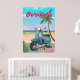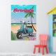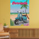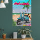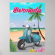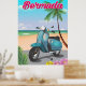 Bermuda Scooter travel poster - Bermuda retro travel poster featuring a retro scooter bike on a sandy beach.