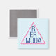 Shows "Bermuda" in modern blue text inside a pink Bermuda triangle. The legend and myth of the mysterious Devil's Triangle and Hurricane Alley lives on. Cool design.
