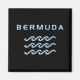 Stylised design shows three ocean or water waves and the word "Bermuda" above in a cool modern text. Design is all-blue.