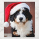 Cute Bernedoodle wearing a Santa hat.