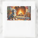 Bernedoodle Fireplace with Christmas Lights Rectangular Sticker