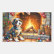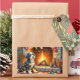 This cozy Christmas illustration features an adorable Bernedoodle sitting beside a glowing fireplace, wrapped in twinkling Christmas lights with festive stockings hanging overhead. The breed’s fluffy coat and sweet expression bring extra warmth and charm to this heartwarming holiday scene. Perfect for Bernedoodle lovers, seasonal décor fans, and Zazzle shoppers looking for unique Christmas art that highlights their favorite doodle breed.
