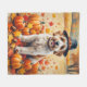 Bernedoodle In Autumn Leaves Thanksgiving Art Fleece Blanket