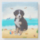 Bernese Mountain Dog on Beach Stone Coaster
