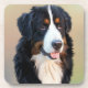 Beautiful painted portrait of a soulful looking Bernese Mountain dog.