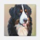 Beautiful painted portrait of a soulful looking Bernese Mountain dog.