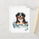 Cute dog watercolor illustration of a happy Bernese Mountain dog in a bathtub. Great for dog lovers.