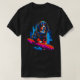 I give wanted to give this a 4 instead of a 5 because these Basic DARK T0shirts run unexpectedly SLIM or Narrow. Which is great if you do not have a potbelly, but I have a paunch. It isn't the shirt's fault that I've got a beer belly. The design and shirt itself is a quality cotton shirt. The color is more of a deep purple, but still a very pretty color. The Basic DARK T-shirts run a bit SLIMMER than the Basic Ts. The neck is a fraction narrower (or seems to be narrower) also. I'm a paunchy middle-aged woman and my neck is 12 inches (31cm) thick and the neckline fell about the same as in the photo of the man, and I had the desire to tug it a bit. So if you're a thick necked man or like loose shirts, be aware these are slimmer shirts. Once I get rid of my lockdown paunch it'll look great. The shirt washed well in cold water with no apparent bleeding. We don't have a dryer, so it hung dry. Did not shrink. Love the colors and the design. The design looks smaller on my shirt than it does on the model on-line. But still, it looks good on the shirt. The printing looks as it does on the model, just the size seems fractionally smaller. Washed garment in cold water, hung dry and design appeared unaffected.