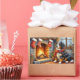 A cozy Christmas artwork featuring a majestic Bernese Mountain Dog sitting beside a glowing fireplace adorned with stockings and sparkling Christmas lights. This festive holiday scene beautifully captures the Bernese Mountain Dog’s gentle, loyal nature and love for family, making it an ideal addition to any dog lover’s home decor. Celebrate the warmth and magic of the season with this heartwarming pet-inspired artwork.