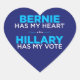 A political campaign sticker for Democrats whose hearts are with Bernie Sanders but who now stand with Hillary Clinton to defeat Donald Trump at all costs.