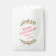 Personalised holiday Christmas favour bags with a stylish, modern watercolor of green leaves and red berries with your greeting and info in chic lettering. MATCHING items in our collection.