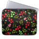 The sleeve is made of nice feeling material and seems very durable. I'm not sure how easy it'll be to clean, but the construction seems sound and the fabric is quick thick. I also like the double zipper. The printing is lovely and appears durable. The white on black contrast is nice, and the design very elegant.