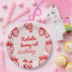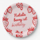 As you see this unique and elegant berry first 1st birthday paper plates has a well designed template. With red hand drawn strawberries and whimsical written hand written name. All on pink background . Which you can customise easily by clocking on the personalise button.