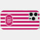 Berry and White Monogrammed Stripes Case-Mate iPhone Case