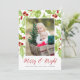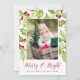 Share holiday greetings with these photo Christmas cards featuring your favorite photo set on a background of red and green watercolor holly berries and leaves. "Merry & Bright" appears beneath in red modern calligraphy lettering, with your names or custom message along the bottom.