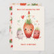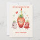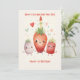 Celebrate one year of sweetness with this adorable 1st anniversary birthday card featuring strawberries in party hats. The perfect way to say 'Berry Cute and One Year Old!' The card features a blank space on the back, so you can add your personalised message!
