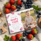 Celebrate your little one’s big milestone with this sweet strawberry "Berry First Birthday" photo invitation. Featuring a delicate pink watercolor border with hand-painted berries and floral accents, this design creates a whimsical frame for a custom photo of your birthday girl. The retro-inspired typography adds a trendy, playful touch to the "Berry First" headline, while the clean layout below ensures all your party details are clear and easy for guests to read. Perfect for a summer fruit-themed party or a garden picnic, this high-quality template is easy to personalize for a truly special first birthday keepsake.