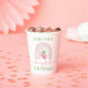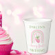 Berry First Birthday Paper Cups with watercolor strawberries, a pretty pink green rainbow and a little heart.