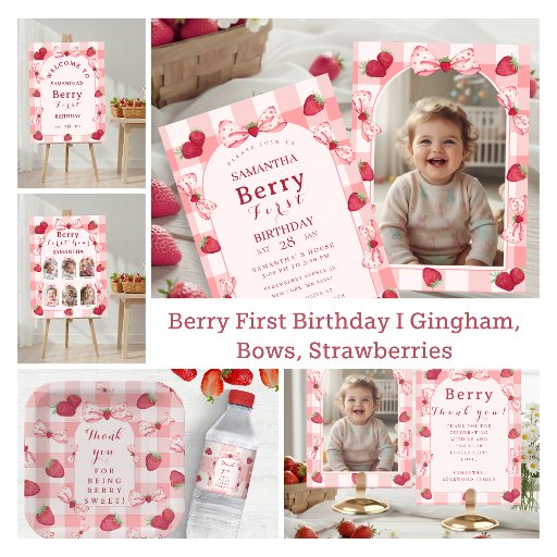 Berry First Birthday I Gingham, Bows, StrawberriesDesigned by Snjeza N.