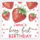 Fun strawberry watercolor floral artwork. Strawberries and blooms! Sweet Script Font. Children's pink berry sweet strawberry birthday theme. Easy to personalise. Also available as a digital download! Spring, summer parties