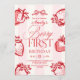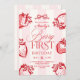 Berry First Hand Drawn Bow Strawberry Birthday Invitation