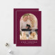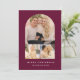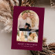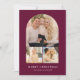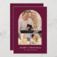 Modern holiday photo card featuring 3 of your photos arranged in an arch-shaped grid layout. Personalise the front of the multi-photo holiday card with your custom greeting and family name displayed in white lettering with a berry purple background. The card reverses to a subtle berry and white dot pattern.