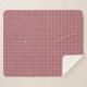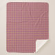 This warm and cosy Sherpa blanket is shown with a berry and golden pink plaid print design.
