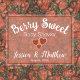 A unique design of red strawberries "berry sweet" theme baby shower bunting flags. To customise further and if you would like to see this banner with a more robust strawberry design, hide/remove the translucent white cover (graphic) by using the design tool.