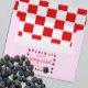Berry sweet birthday with strawberries and blueberries with a chequerboard picnic style background.