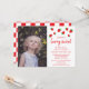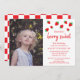 Berry sweet strawberry birthday invitation with red fruit and chequerboard style background. Photo template via Pixabay licensed under CC0 and must be replaced with your own photo