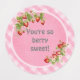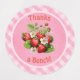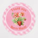 Celebrate the precious little one on the way with a delightful pun that adds fun to the occasion. A "Berry Sweet Baby Shower" is the perfect theme to honour the mother-to-be and the bundle of joy soon to arrive, or in this case, the little sweet berry baby girl. These stickers features a vintage flair with a Gingham-style background in pink and white, creating a charming country feel. An round pink frame, embellished with watercolor strawberries, leaves, and flowers, adds freshness and whimsy to the design. Delight and say thanks to your guests with a nice short funny pun. Great to add on your party favour bags or boxes or your thank you note cards. Have a sweet time celebrating with this cute stickers.
