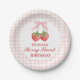Berry Sweet strawberry birthday Pink Bow Gingham Paper Plate