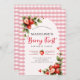 Berry Sweet Strawberry Gingham Summer 1st Birthday Invitation