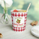Super cute strawberry theme with a classic picnic tablecloth red and white buffalo check background pattern.